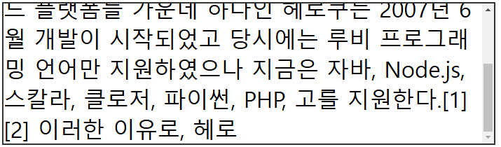 <textarea> 태그에서 overflow:auto를 설정해 스크롤 막대가 필요하지 않을 경우 스크롤 막대가 표시되지 않도록 설정해야 합니다.