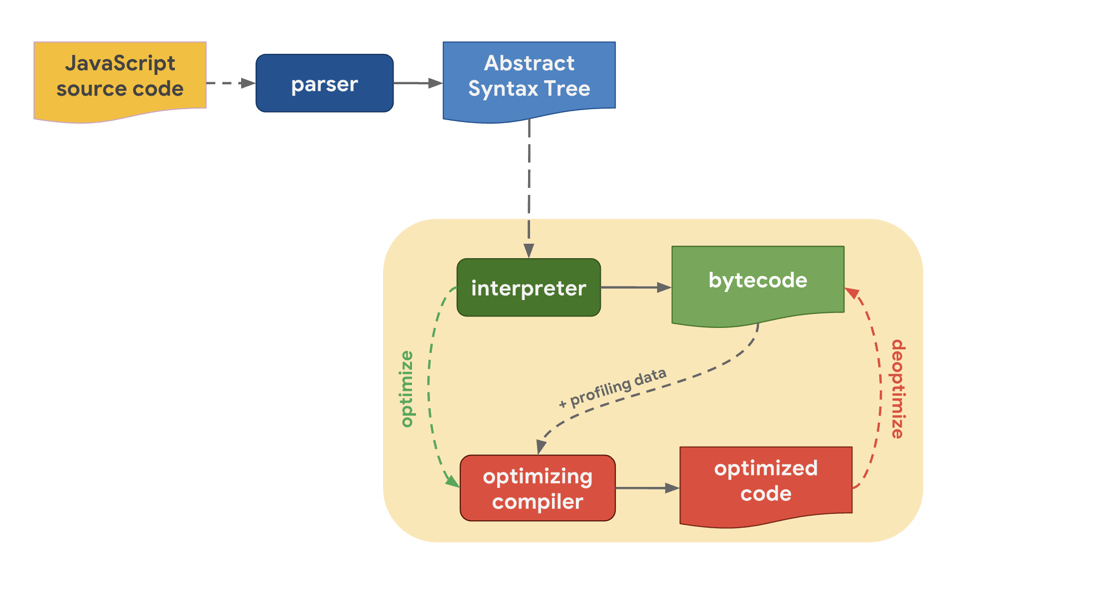 모든 프로그래밍 언어에는 영어와 유사한 구문을 기계어로 변환해 운영 체제가 이러한 기계어를 실행하는 방식으로 작동하며 Javascript는 스크립팅 언어 또는 인터프리터 언어로 크게 분류됩니다. Javascript 코드는 Javascript 엔진에 의해 해석됩니다. 다른 프로그래밍 언어를 사용할 경우 컴파일러가 전체 코드를 별도의 단계에서 기계어로 컴파일 합니다.