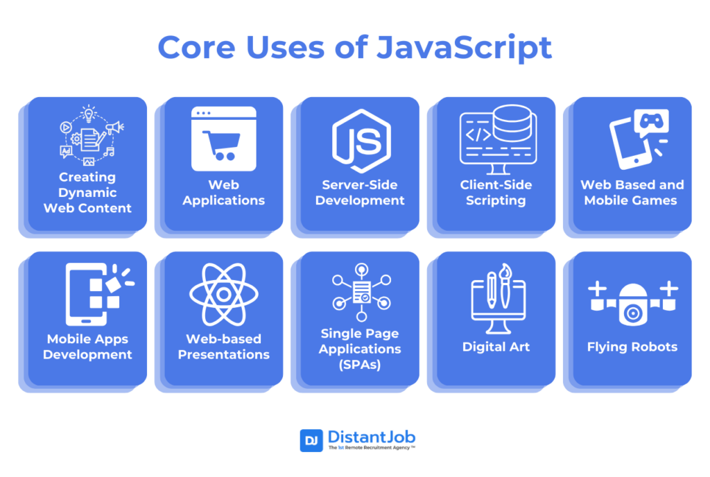 Javascript의 구문은 Java 프로그래밍 언어에서 영감을 받았고, 배우거나 코딩하기 쉬운 언어입니다. 개발자는 클라이언트 측 스크립팅을 위해서 거의 모든 웹 사이트 및 모바일 앱에서 Javascript를 사용합니다. Node.js는 지난 10년 동안 백엔드 코딩에서도 상당한 인기를 얻었습니다.