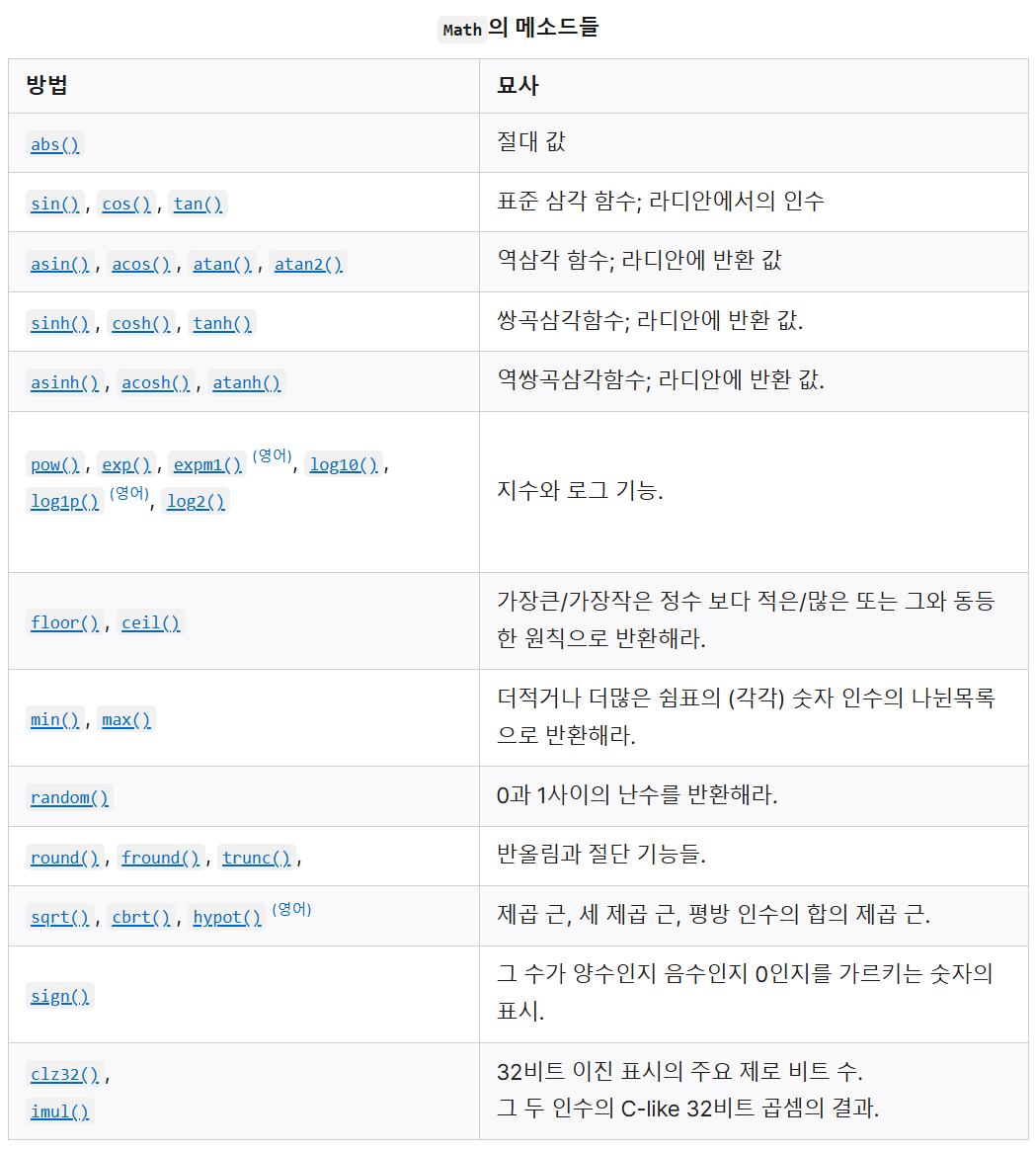 마찬가지로 표준 수학 함수도 Math의 함수이며, 여기에 삼각함수, 로그 함수, 지수 함수 및 기타 함수가 포함됩니다.