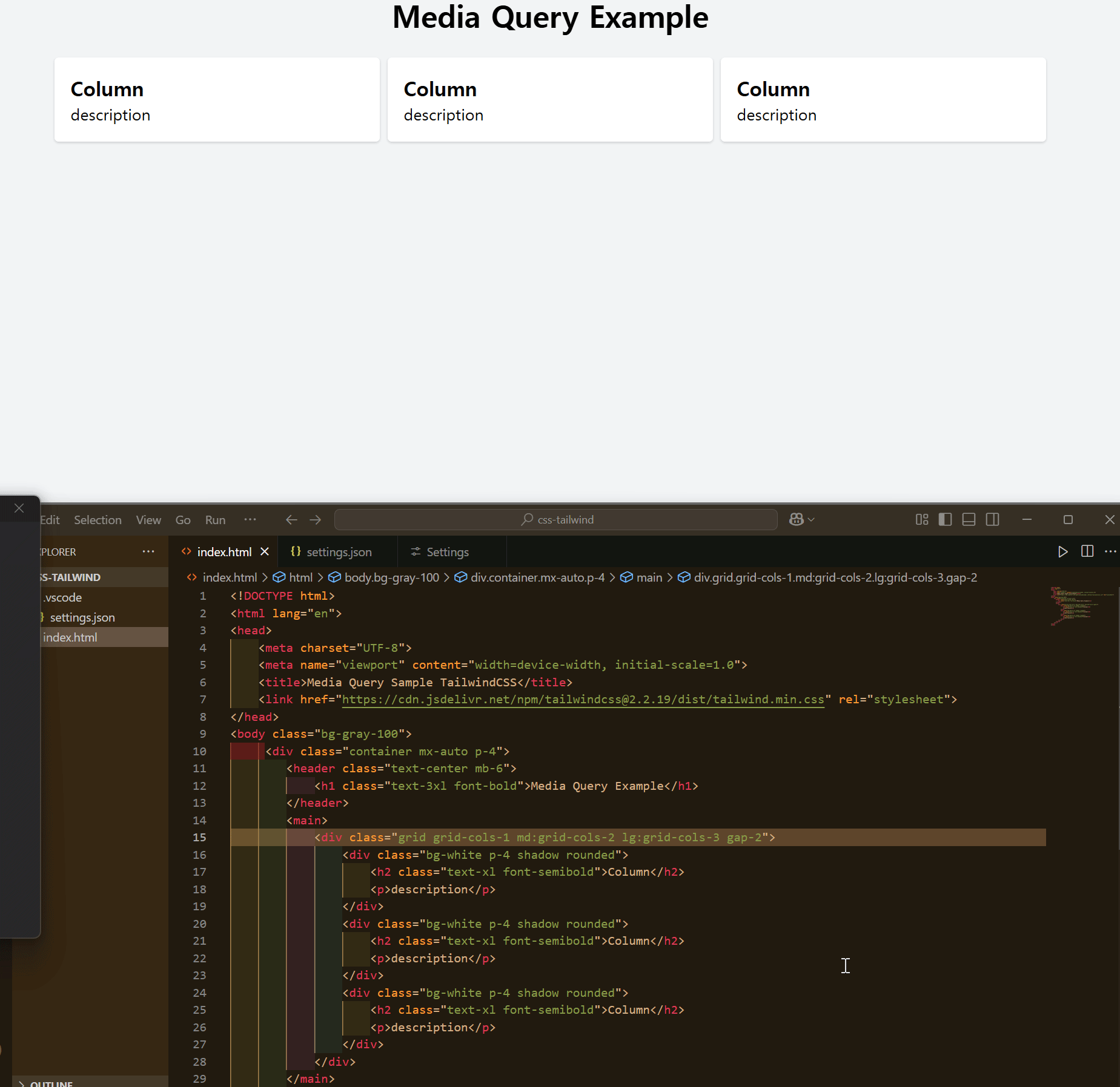 <title>Media Query Sample TailwindCSS</title>